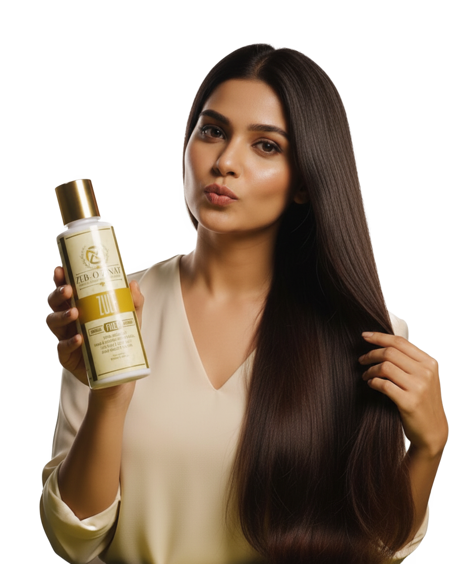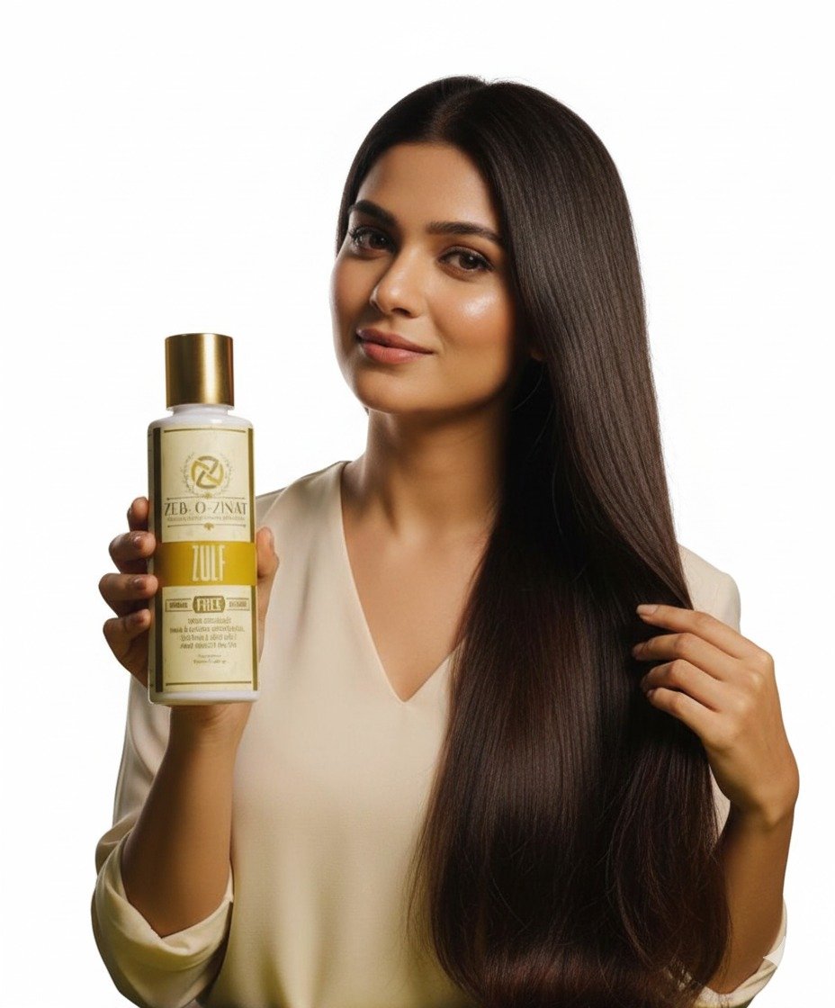 At Zeb o Zinat, we believe that the first step to real beauty is natural care. Our special organic hair oil, Zulf, is made with high-quality herbs and essential oils. Unlike regular oils, Zulf is designed to protect against hard water, which lessens breakage, hair loss, and irritation of the scalp while restoring natural shine.